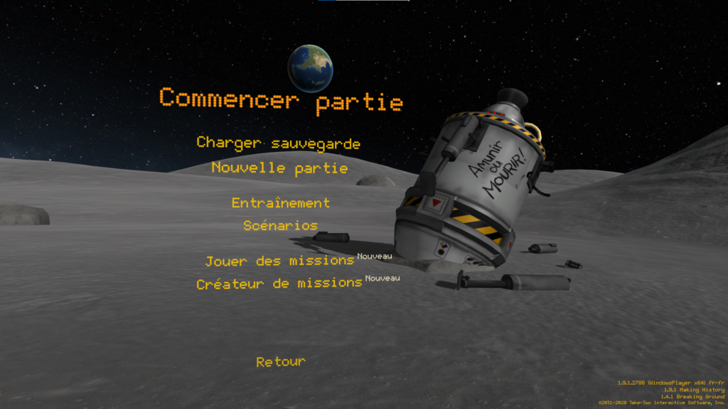 → Vous emmène sur une page ou vous pouvez télécharger des « mods ». Ce sont des fonctionnalités crées par la communauté (comme de nouvelles pièces, des moteurs de fusées réelles, des pilotes automatiques, …). Un article sera sans doute fait à ce sujet !