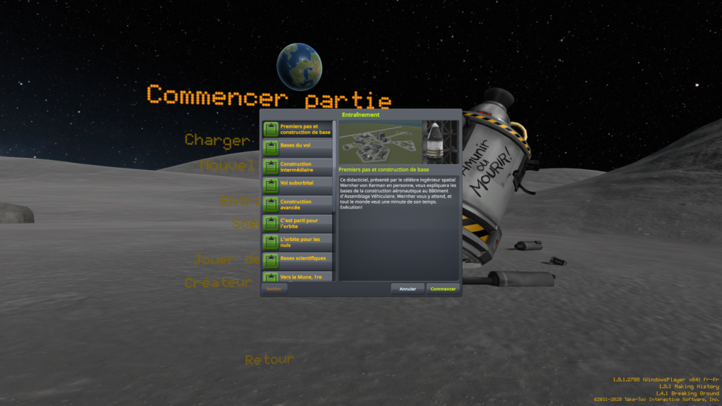 → « Entrainement » : sert de tutoriel (nous allons y venir de suite !)